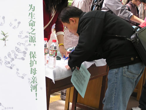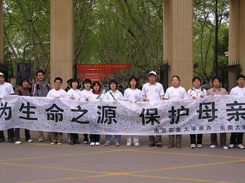 今年活动的主题是“为生命之源,保护母亲河”,绿源环协在学校团委的领导下、资环学院团委的指导下,联合资环学院学生会精心组织策划,于2006年4月初开展了一系列主题宣传教育活动,通过签名横幅、散发倡议书、免费播放环保电影、骑车环城宣教等各种各样的形式,扩大了活动的影响面,得到了南京多所高校环保社团、新闻媒体及社会各界人士的关注和支持。