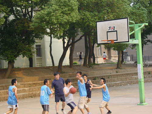 6月11日下午四点,为欢送02届大四毕业生,表达我院师生之间深厚的情谊,我院在旧篮球场举行了一场别开生面的欢送大四生师生篮球友谊赛。院党委戴廷波副书记、院辅导员庄森老师以及其他几名教师参加了本次比赛,辅导员刘亮老师观看了比赛。