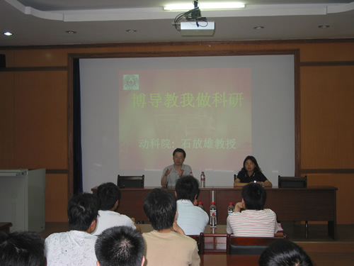 6月15日上午9点,动物科技学院2006届升学的准研究生们与博导在逸夫楼2064进行交流。