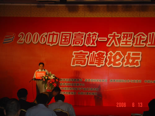 2006年6月13日,由教育部科技发展中心主办的“2006中国高校与大型企业合作论坛”会议在北京进行。会议分三个议程,分别是开幕式暨高峰论坛、科技创新主题论坛、创新人才培养主题论坛。三个论坛分别于2006年6月13日、14日、15日在北京新世纪饭店、清华大学、北京大学举行。教育部党组副书记、副部长袁贵仁、副部长赵沁平、副部长吴启迪分别到场致辞讲话。我校应邀参加了会议。