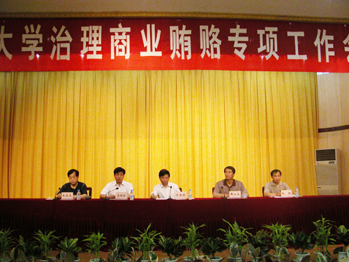 校党委书记管恒禄同志作重要讲话。他指出,开展治理商业贿赂专项工作是党中央、国务院作出的一项重大决策。胡锦涛总书记在中纪委第六次全会上明确要求把治理商业贿赂作为今年党风廉政建设和反腐败工作的重点任务之一。温家宝总理强调,要把治理商业贿赂作为今年政府反腐倡廉工作的重中之重。党中央、国务院、教育部、江苏省先后发出关于开展治理商业贿赂专项工作及自查自纠工作的文件,明确提出了专项治理及自查自纠工作的总体要求、重点内容、工作程序和政策界限。校党委接着发出了《关于开展治理商业贿赂自查自纠工作的实施意见》。各单位要很好地组织全体同志认真学习,深刻领会,从政治和全局的高度,从促进学校发展、部门建设、党员修养、公民守法、家庭和谐、个人进步出发,充分认识开展治理商业贿赂专项工作的重要意义,把思想和行动统一到党中央决策和部署上来,统一到上级文件精神上来,坚定信心,扎实工作,使治理商业贿赂专项工作取得成效。