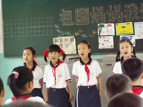 诗朗诵《彩色的中国》、《长江长,黄河黄》、《祖国》表达了队员们对祖国大好河山的热爱;快板《祖国好》歌颂了祖国的地大物博、物产丰富;舞蹈《我们的祖国是花园》表达了小队员们在祖国这个大花园里,像花朵一样生长的快乐心情;独唱《种太阳》表达了队员们的愿望:长大后要让世界的每一个角落都充满阳光。在队会中,小队员们还用绘画、书法、电子琴、小提琴演奏等形式来赞美祖国。在《同一首歌》的优美旋律中,一(1)中队主题队会圆满地结束了。