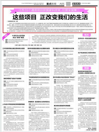 而由江苏科学家参与完成的项目也获得多项大奖,其中中国石化扬子石油化工有限公司参与的高效环保芳烃成套技术开发及应用项目获得国家科技进步奖特等奖,另无锡市第三人民医院、苏州大学等单位参与的中国人体表难愈合创面发生新特征与防治创新理论与关键措施研究获得国家科技进步奖一等奖。