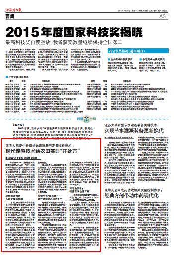 传感器一“转”,就能监测农田肥水情况;无人机一“瞄”,就能判断作物生长走势;农民和种植大户们手机在手,就能实时获得量化的施肥建议,再也不必苦等农技人员下田看苗……南京农业大学的稻麦生长指标光谱监测与定量诊断技术,以水稻和小麦为主要研究对象开展深入系统研究,集成建立了基于反射光谱的作物生长光谱监测与定量诊断技术体系,获得2015年度国家科技进步奖二等奖。