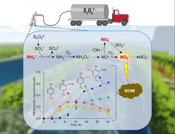 “这也是首次发现亚硝酸盐、铵氮可以在硫酸根自由基的作用下转化生成硝基芳香化合物等二次污染。”陆隽鹤说。