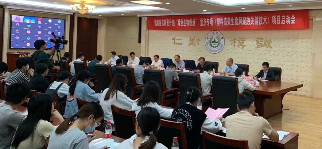 5月14日,我校牵头的国家重点研发计划“绿色生物制造”重点专项“塑料高效生物解聚的关键技术”项目在我校召开项目启动暨实施方案论证会。会议采用线上线下相结合的方式进行。科技部中国生物技术发展中心工业生物技术处副处长耿红冉应邀出席会议。北京化工大学校长谭天伟院士、中国农科院北京畜牧兽医研究所姚斌院士、南京工业大学应汉杰院士、南京农业大学沈其荣院士等专家作为项目专家咨询委员会委员参加会议。我校副校长丁艳锋教授出席会议。
