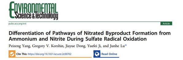 近日,资环学院陆隽鹤教授课题组成果“Differentiation of Pathways of Nitrated Byproduct Formation from Ammonium and Nitrite During Sulfate Radical Oxidation”发表在环境领域权威期刊Environmental Science & Technology上。