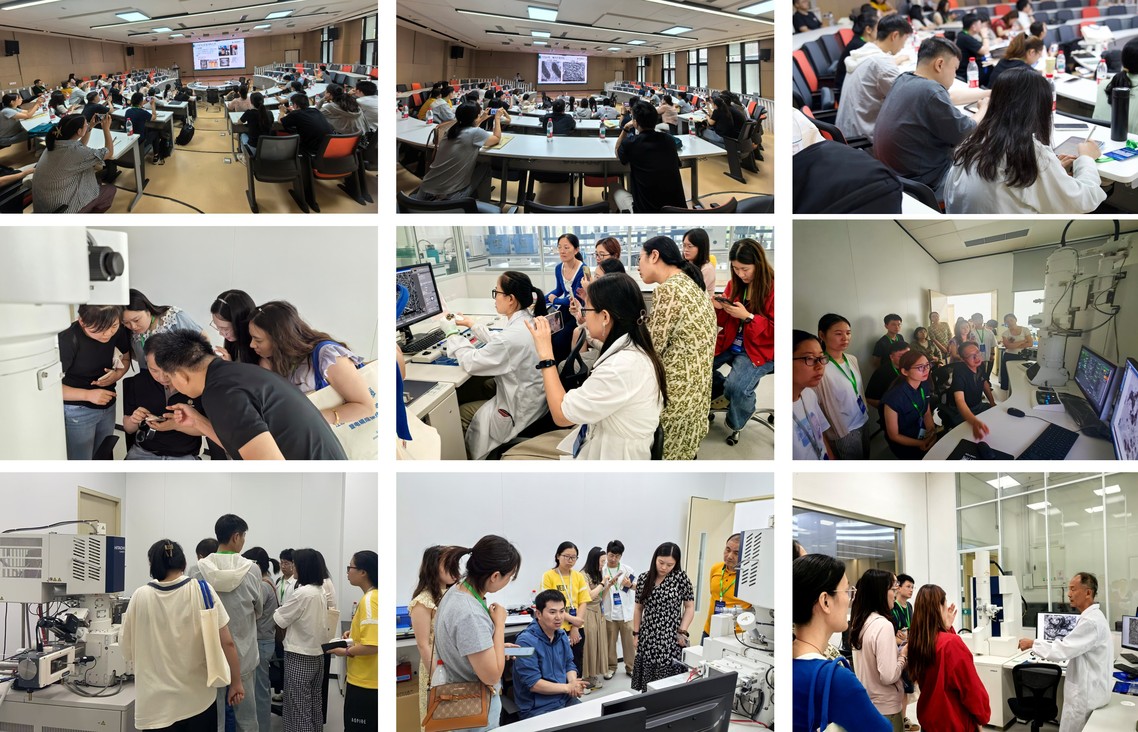 第二阶段,培训重点聚焦能谱联用分析 (EDS)、免疫电镜技术、冷冻扫描电镜 (Cryo-SEM)、连续超薄切片及大尺度三维重构技术等,采用理论讲解、案例分析与实际操作演示相结合的模式,由电子显微学领域知名专家学者以及资深电镜应用工程师进行授课,过程中就实际操作中的难点、平台管理经验等与学员们进行深入交流和探讨。