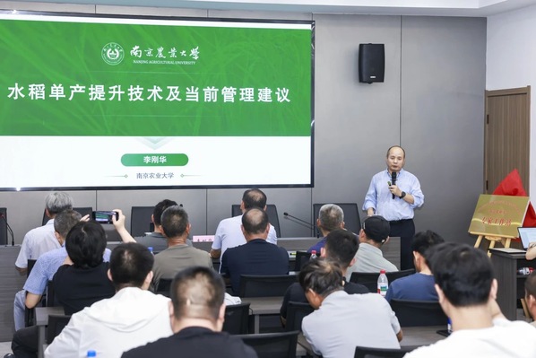 8月4日,南京农业大学农学院、南京市高淳区农业农村局联合举办南京市高淳区2025年整建制开展稻麦(油)轮作单产提升项目片区启动会暨培训会议。推动“南农智慧”与“田间需求”常态化对接。南京农业大学专家团队现场指导,为2万余亩重点片区种粮大户送上“科技大餐”,助力高淳打造江苏粮食高产标杆区。