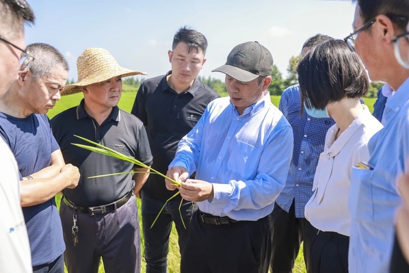 观摩现场,南京农业大学专家团队深入南京红太阳种业有限公司、高淳区新龙家庭农场示范田,实地查看水稻晒田及生长情况,结合水稻长势向大户生动讲解了水稻抗倒伏、保产量的生理机理,并向大户建议继续加强晒田,缩短水稻第1、2节间长度,达到抗倒伏、提升产量的效果。