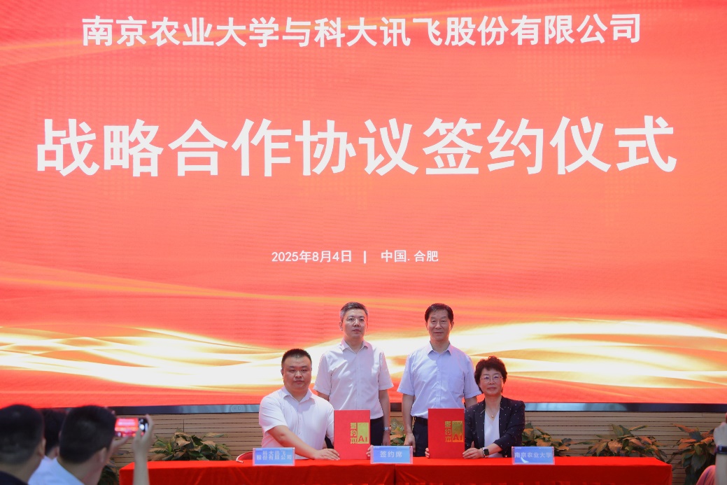 8月4日,南京农业大学与科大讯飞股份有限公司在合肥举行战略合作签约仪式。全国政协常委、教科卫体委员会副主任、民盟中央副主席、我校智慧农业研究院名誉院长曹卫星,科大讯飞副总裁、江苏大区总经理黄飞云,科大讯飞高教事业部副总经理尹明磊,我校副校长朱艳等出席签约仪式。