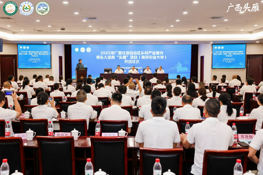 8月6日上午,广西壮族自治区乡村产业振兴带头人培育“头雁”项目首期开班仪式在南京农业大学举行。广西壮族自治区农业农村厅副厅长、一级巡视员唐咸来,南京农业大学党委副书记、纪委书记吴荣顺出席仪式并致辞。本次培育项目是南京农业大学首次承担江苏省外“头雁”培育任务,标志着学校与广西壮族自治区校地合作迈上新台阶,也是学校服务国家乡村产业振兴带头人培育战略的又一重要实践。