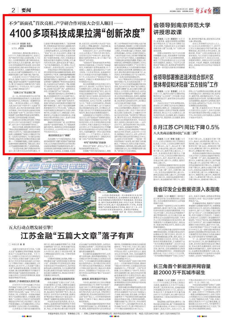初秋的南京,微风轻拂,舒适宜人。9月11日,在南京国际展览中心,2025江苏产学研合作对接大会如约启幕,几十位院士、百余家高校院所、数千家科技企业、超万名科技人员应邀相聚。集中发布4100多项高校院所科技成果、3600多条企业技术需求,组织4000多家企业与专家教授、技术经理人、金融机构等对接洽谈,使大会主题“科技赋能新质生产力 创新融合发展打头阵”具体可感、内涵丰富。