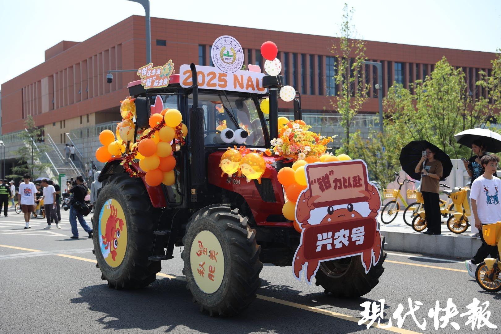 南京农业大学团委副书记朱媛媛介绍,此次活动以花车巡游为载体,将科技强农、文化兴农、青春助农融为一体,展现南农学子知农爱农、强农兴农的使命担当。“‘菊’世无双号”“‘钳’力以赴号”等五辆主题花车,不仅名字创意十足,更凝聚了学校在菊花种质资源、生态养殖、稻米科技、产业帮扶和智慧农业等方面的最新科研成果。”