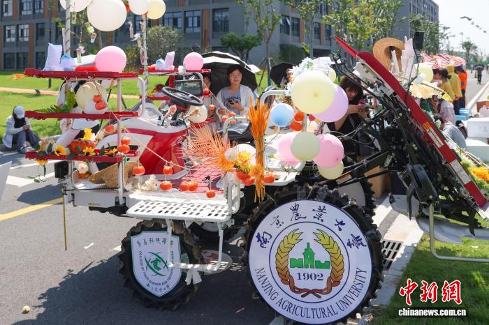 【中国新闻网】农科人的浪漫 南京农业大学“五谷丰登”主题花车巡游校园庆丰收