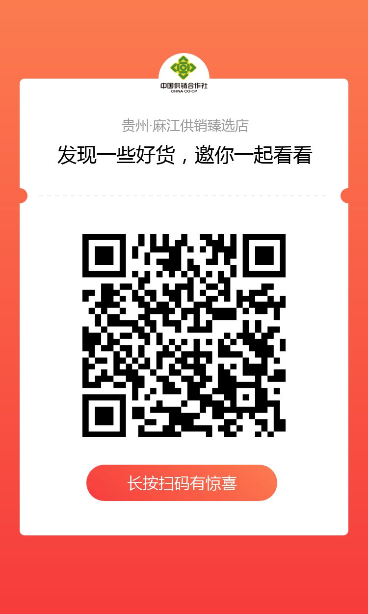 采购渠道:贵州▪麻江供销甄选店(微店)。微信直接搜索“贵州麻江供销臻选店”或直接扫下面的二维码,可进入微店直接采购。主要包括菊花茶系列产品、蓝莓系列产品、调味酸汤系列产品、锌硒大米、草鸡蛋、蜂蜜等麻江特色产品。