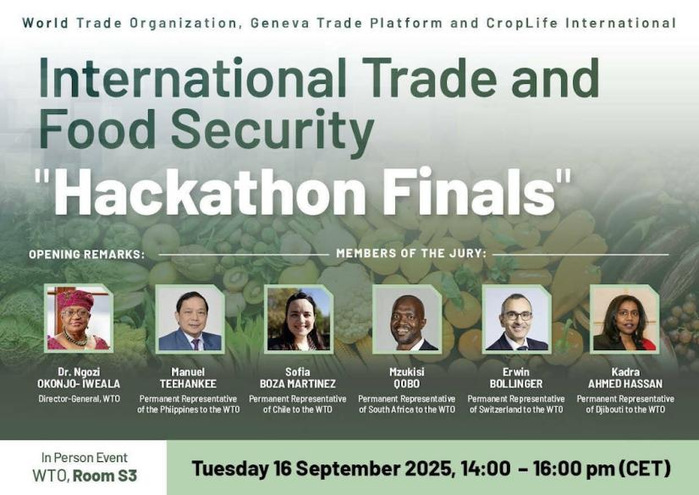 近日,世界贸易组织(WTO)年度最具影响力的外联活动——公共论坛在瑞士日内瓦举行,来自政府、产业、学界及非政府组织等各界4200余名代表参会。作为论坛的重要环节之一,WTO首届“国际贸易与粮食安全”全球政策Hackathon大赛决赛同期举办。南京农业大学经济管理学院“大国食物安全与全球农业合作”创新团队指导的学生团队Agro-Strategos,从来自30多个国家和地区的58支队伍中脱颖而出,在决赛角逐中荣获全球第三名。中国常驻WTO代表团临时代办李毅红公使专门致信,向学校及参赛师生表示祝贺。