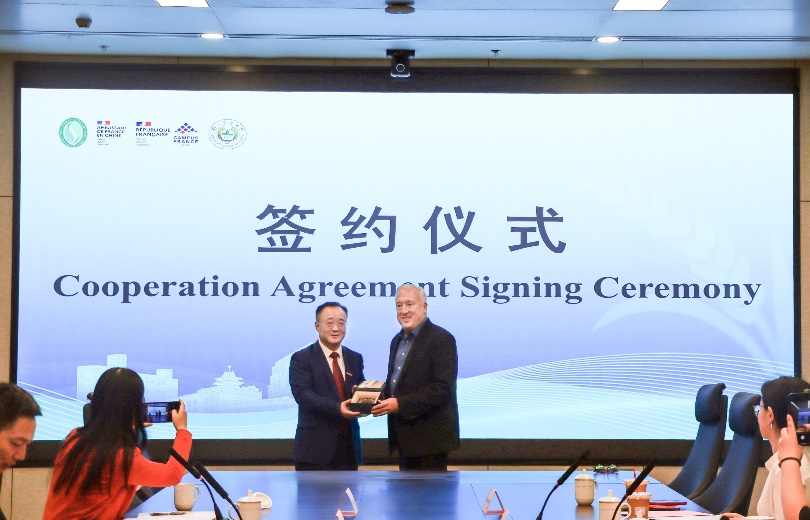 会上签署了南京农业大学与中国留法人员农业学会合作备忘录、南京农业大学前沿交叉研究院与SynTech Research集团合作框架协议,单正丰、Jasper Barnes代表双方互赠纪念礼物。