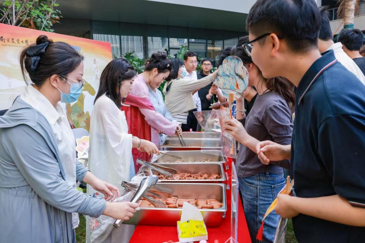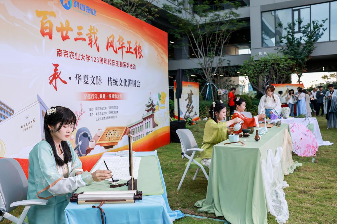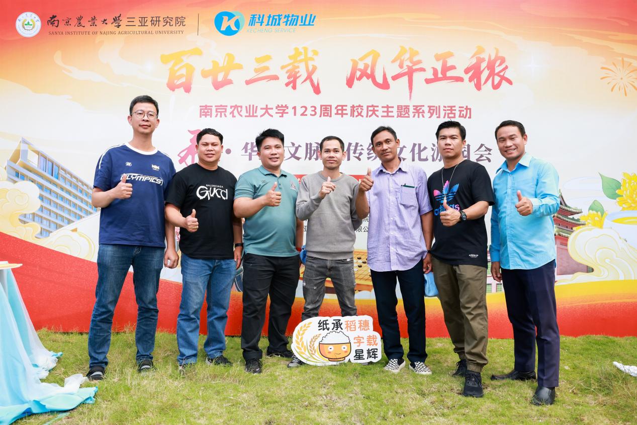 10月24日,南京农业大学三亚研究院举办了一场以"百廿三载 风华正秾"为主题的重阳传统文化游园会。来自缅甸、文莱、泰国、柬埔寨、老挝等五国的农业、科技、农业商品和食品标准局等部门代表,与全院师生齐聚研究院广场花园,在秋韵正浓的椰风海韵中共同体验中国传统文化的独特魅力。