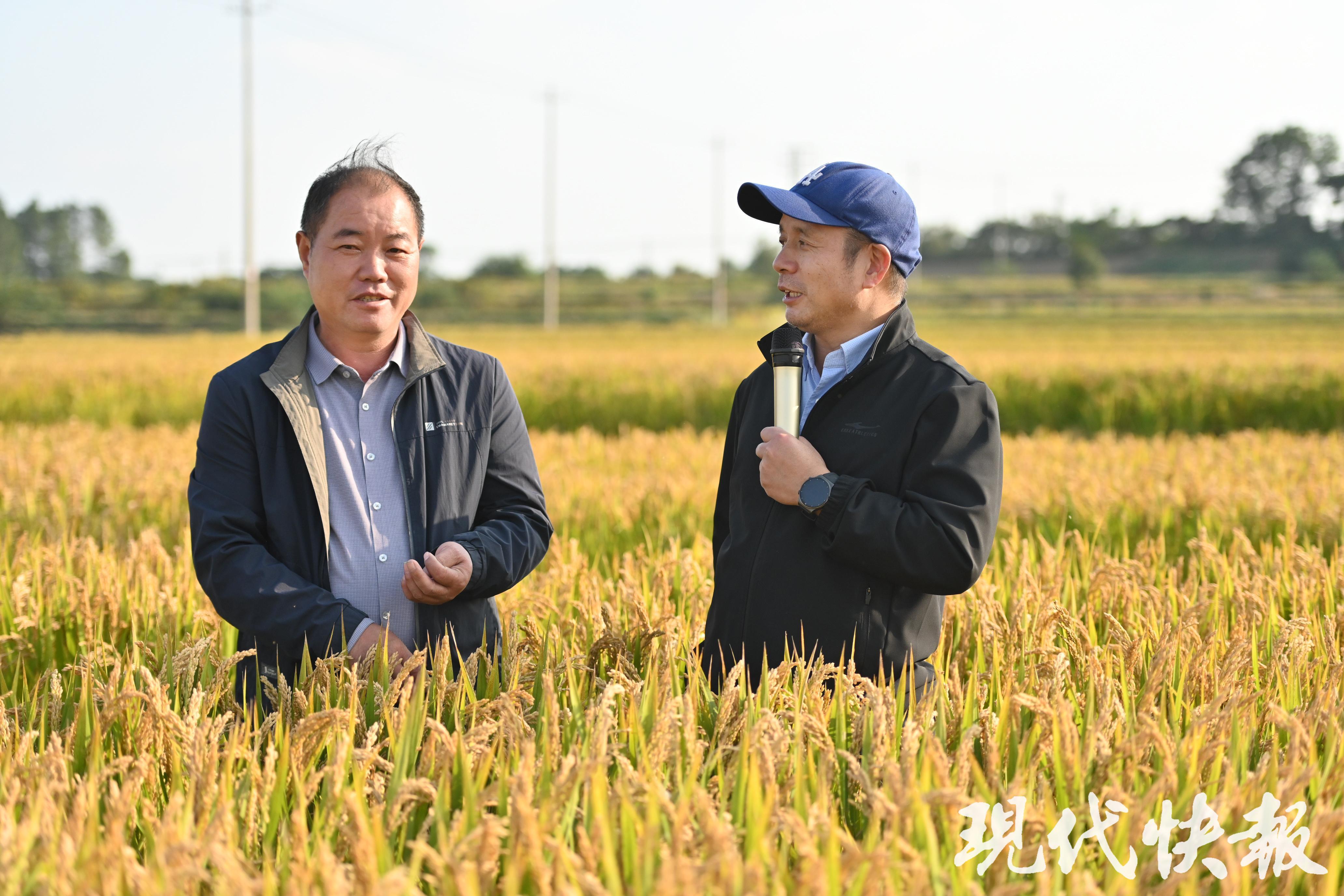 “眼前这片稻田,是南京市高淳区整建制开展稻麦(油)轮作单产提升项目核心片区!”农学院副院长、水稻精确定量栽培团队教授李刚华手持稻穗介绍,“农场主一个人就能打理这么大面积的稻田,靠的可不是蛮劲,全是技术在‘撑腰’!学校派驻专家团队驻点,把“高产秘籍”送到田间地头,让好种子配上好方法,既帮种植户提效增收,也让优质粮食走上更多人的餐桌。以‘良种+良法’助力高淳打造江苏粮食高产标杆区。”