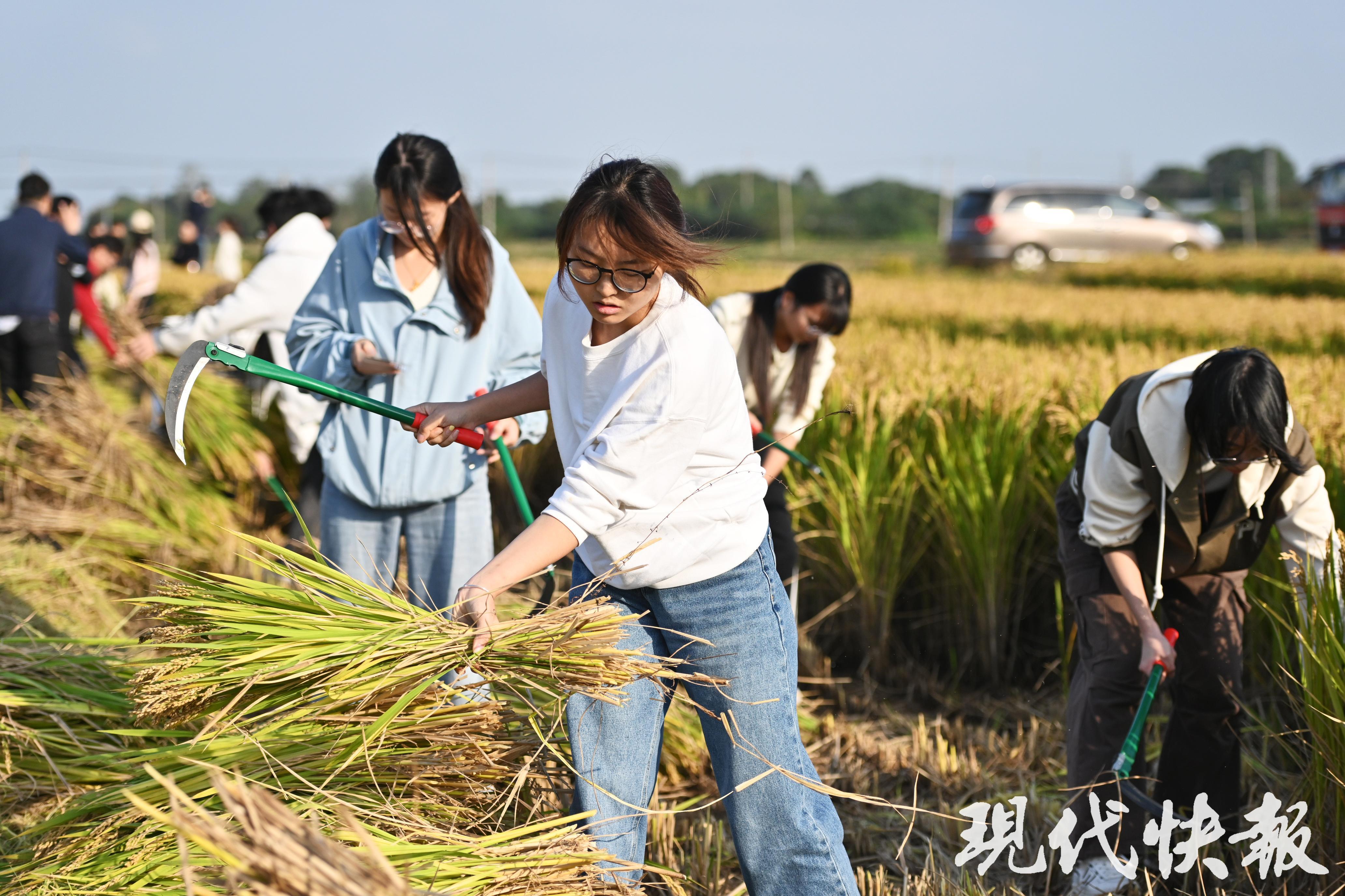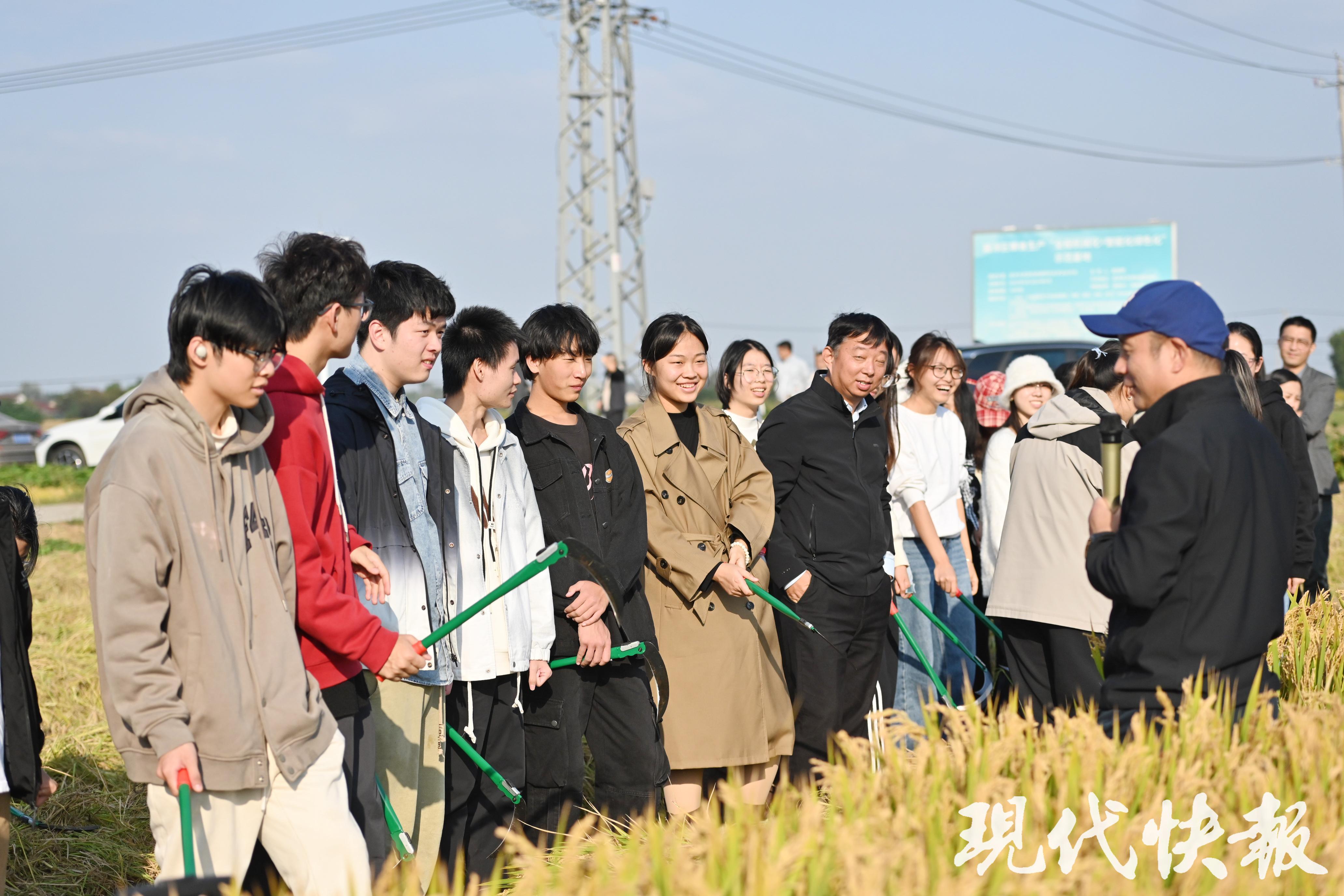 现代快报讯(通讯员 严楚越 记者 李楠)“同学,尝尝这份米饭,知道它来自咱们学校哪项科研成果吗?”9月开学季,南京农业大学党委书记王春春走进食堂,与新生共品“开学第一餐”,这碗喷香的米饭来自中国工程院院士万建民领衔的南京农业大学水稻遗传育种创新团队教授育成的“宁香粳9号”金牌大米。近日,为了让师生更直观地了解“宁香粳9号”,该校后勤保障处联合农学院,组织师生走进高淳区陈福明谷物种植家庭农场,在水稻收割的现场,开启“沉浸式研学”,探寻这粒大米从田间到餐桌的历程。