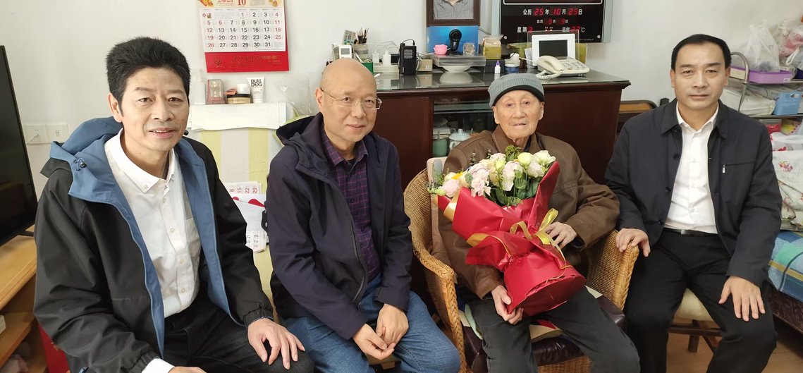 集体庆祝会前夕,离退休工作处、后勤保障处相关负责同志,专程看望100岁寿星林昌骥,详细询问老人的身体状况和生活情况,转达了学校对老人的关怀与祝福。