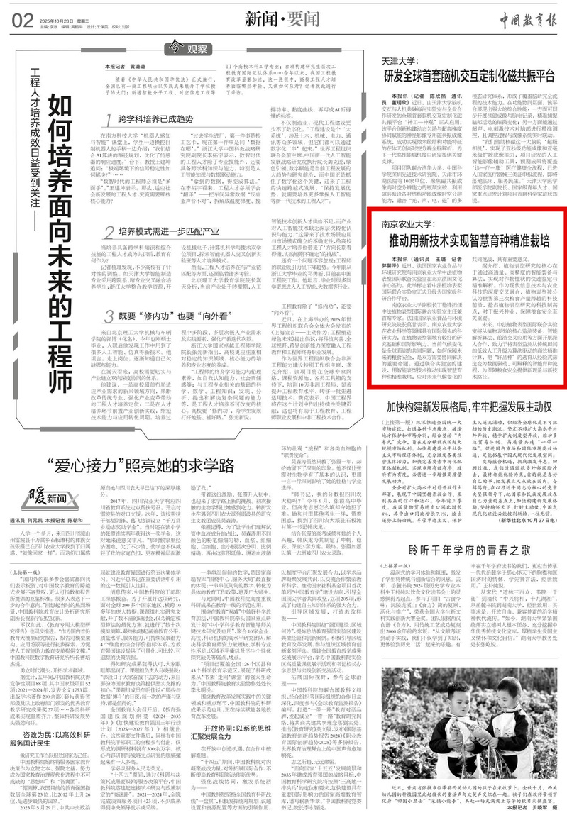 南京农业大学副校长丁艳锋担任中法植物表型国际联合实验室主任兼首席专家。法国国家农业食品与环境研究院院长莫甘表示,南京农业大学在农业科学等领域具有国际领先的科研实力,在植物表型领域有较好的研究基础和国际影响力。当前气候变化是全球面临的共同问题,如何保障未来的粮食安全,是双方需要协同解决的重要命题。通过联合实验室的建设,用智能表型技术推动实现智慧育种和精准栽培,应对未来气候变化的共同挑战,具有重要意义。