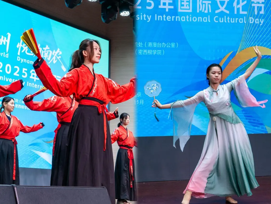 中外学生联袂奉献了极具地域特色的文艺节目。密歇根学院学生献上古典舞《惊鸿·照影》《折柳》,舞姿翩跹,意境悠远;缅甸学生的歌舞《Everlasting Loyalty》传递出深沉的家国情怀;校武术队的《太极功夫扇》一招一式尽显刚柔并济的中华武魂;国际学生们带来的《Rhythms of the World》,以活力四射的舞步点燃全场,引来阵阵欢呼。