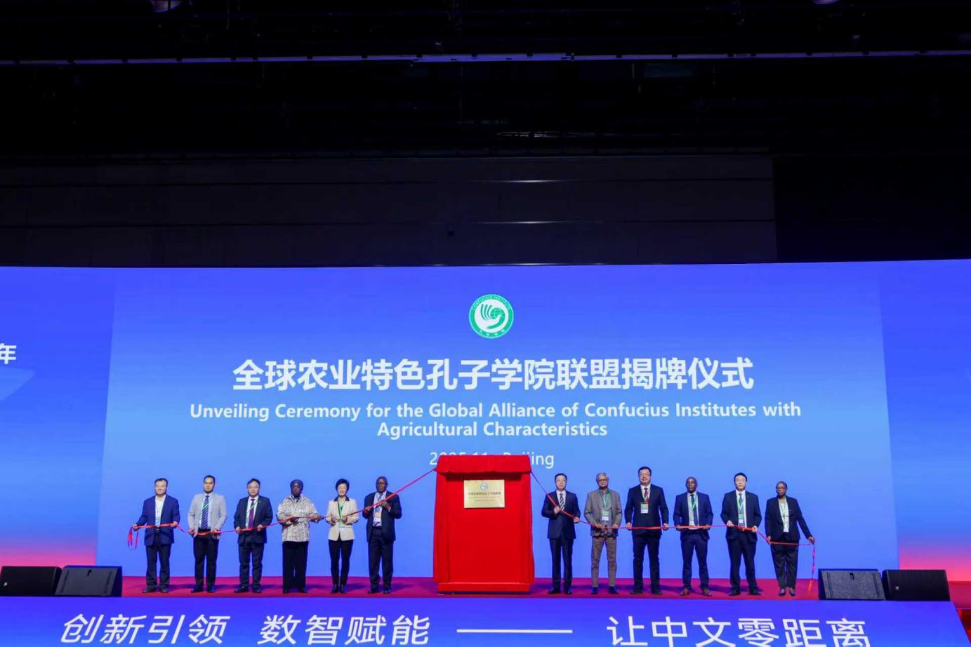 11月14日至16日,2025世界中文大会在北京举办,中共中央政治局常委、国务院副总理丁薛祥出席开幕式并发表主旨讲话。中外政府官员、专家学者、高校负责人和国际组织代表约2000人参加会议。作为大会成果之一,我校牵头倡议的全球农业特色孔子学院联盟在会上成立。