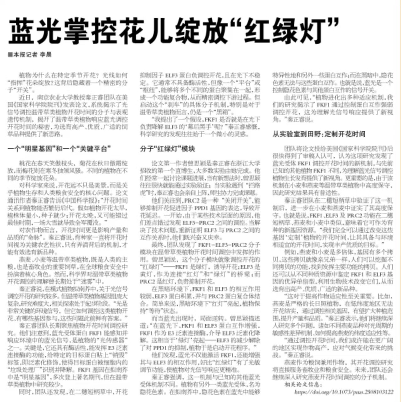 团队将论文投给美国《国家科学院院刊》后很快得到了审稿人认可,认为这项研究发现了蓝光受体FKF1调控开花时间的新机制,与先前已知的其他植物FKF1不同,为理解蓝光信号调控植物生长发育提供了新视角。更重要的是,由于该机制在小麦和燕麦等温带草类植物中高度保守,因此研究结果具有普适性。