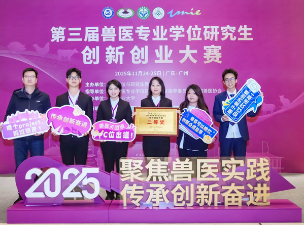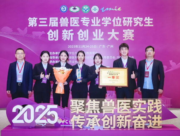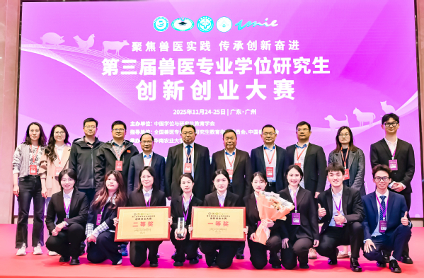 11月24日至25日,由中国学位与研究生教育学会主办,全国兽医专业学位研究生教育指导委员会、中国兽医协会提供学术指导的第三届兽医专业学位研究生创新创业大赛在广州成功举办。由我校动物医学院研究生组建的2支团队在比赛中取得优异成绩,分别获得一等奖和二等奖各一项。
