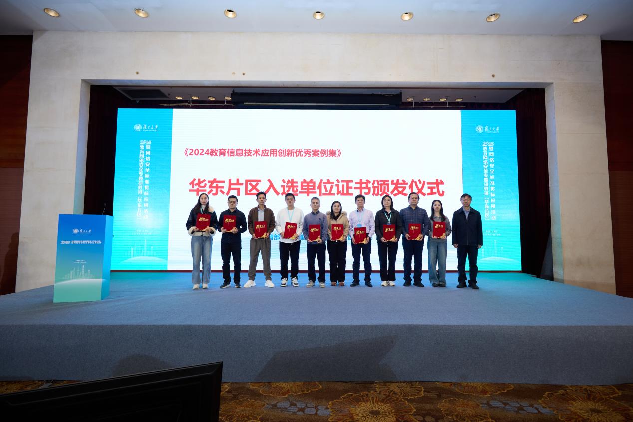日前,由教育部教育管理信息中心主办、复旦大学承办的“2025教育网络安全专题研修班(华东片区)暨网络安全标准贯标应用活动”在上海举行。教育部教育管理信息中心发布了《2024教育信息技术应用创新优秀案例集》,我校申报的两项案例《基于绿色极简的智能门锁校园多场景应用》《基于AI大模型的自助打印平台》收录在成果中。
