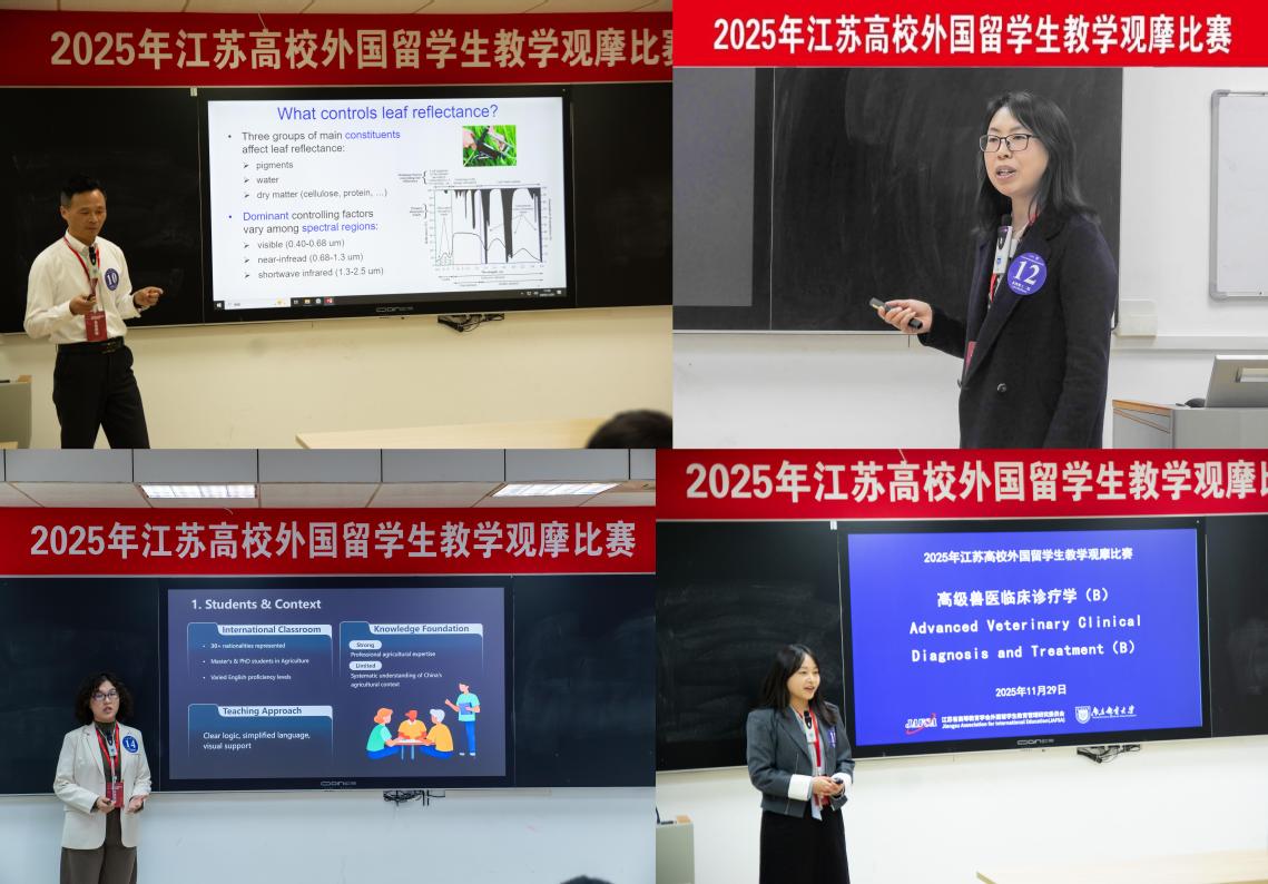 经过激烈角逐,我校教师在多学科领域展现国际化教学实力:外国语学院霍雨佳老师的《中国农业概论》荣获特等奖;智慧农业学院(人工智能学院)程涛老师的《农业遥感原理与技术》、动物医学院毛锶超老师的《高级兽医临床诊疗学》荣获一等奖;食品科技学院刘丽老师的《高级食品化学》荣获二等奖。