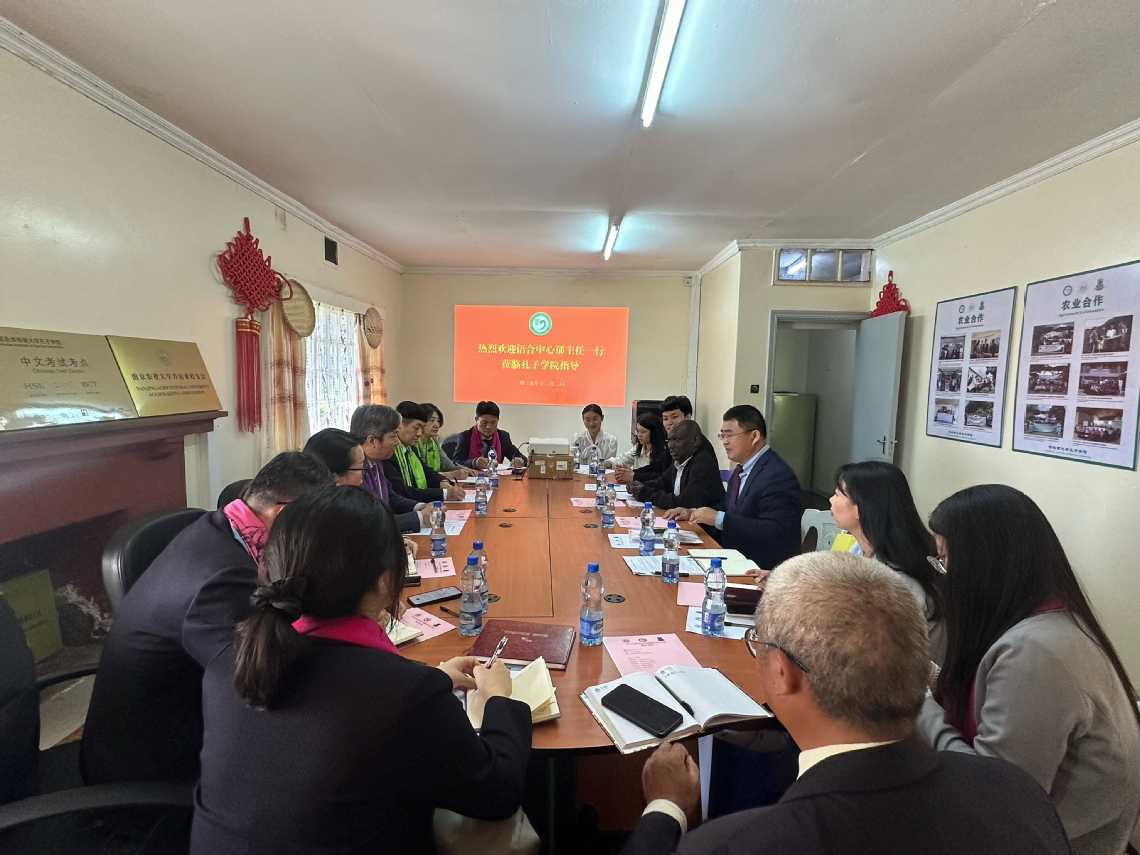 郁云峰看望了我校孔子学院师生,并听取了孔子学院的工作汇报。他充分肯定我校孔子学院紧扣农业特色、扎根本地需求的发展路径,对我校牵头成立全球农业特色孔院联盟所发挥的示范引领作用表示赞赏。郁云峰强调,农业特色孔院应继续坚持立足实际、服务当地,并通过加快本土师资培养与数字化转型,积极应对中文教育发展中的挑战。他勉励孔院持续推进课程与教学系统化、模块化建设,构建可持续发展生态,从而在更广领域发挥重要作用。他希望在中肯关系全面升级的背景下,南京农业大学与埃格顿大学进一步携手,共同响应肯方对中文教育及农业合作的迫切需求,服务中肯命运共同体建设。