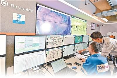 在液化空气上海创新园的智能创新运行中心,员工远程监测工厂运行