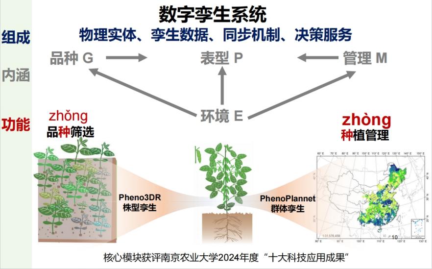 该系统首次打通了“多源遥感感知—数字孪生建模—AI决策生产”的环节,整合了Pheno Max、Pheno Screen等一系列自主研发的表型监测装备,聚合了PB级遥感影像、100万+级品种表型及千万级环境数据,实现了“良种+良法”一键匹配,有效实现了水稻、玉米、大豆三大主粮作物的生产布局优化,推动作物生产从“经验驱动”迈向“数据驱动”。