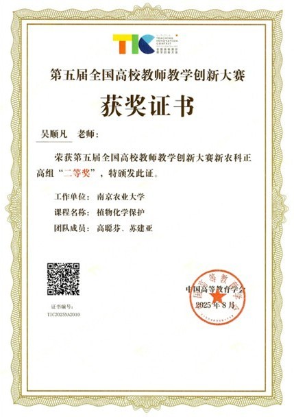 吴顺凡教授获第五届全国高校教师教学创新大赛二等奖