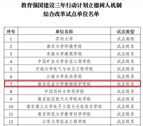 学院党委创新构建“红色党建+绿色植保”双螺旋模式,深入实施“党建思政引领、制度体系完善、一流学科建设、支部活力提升、卓越人才培养”五大工程,推动党建工作与学科建设、人才培养深度融合、同频共振,“全国党建工作标杆院系”培育创建成效显著,成功获批教育部“教育强国建设三年行动计划立德树人机制综合改革试点单位”。学院党委先后获评江苏省高校先进基层党组织、党建工作创新三等奖,入选江苏高校党建工作创新案例。培育省级样板支部1个,入选省级“双带头人”教师党支部书记专项行动团队1个,并承担教育部人文社科研究专项课题、省党建研究课题2项。