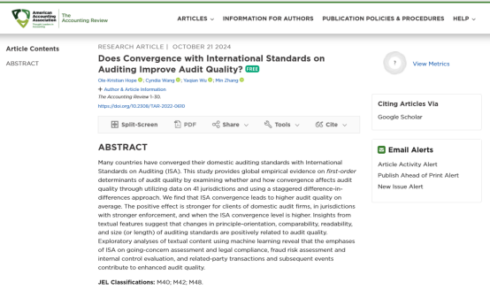 在商科国际顶刊(UTD24)The Accounting Review发表论文