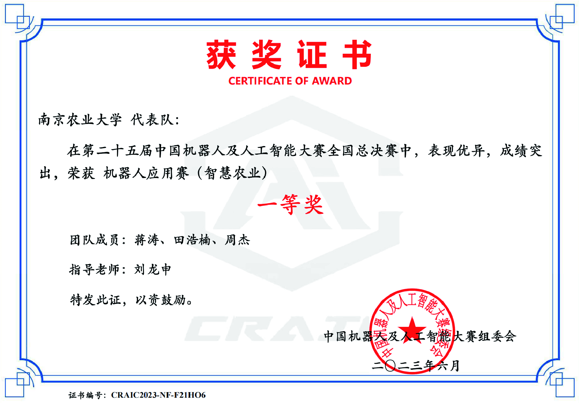 第十届国际大学生智能农业装备创新大赛获得特等奖