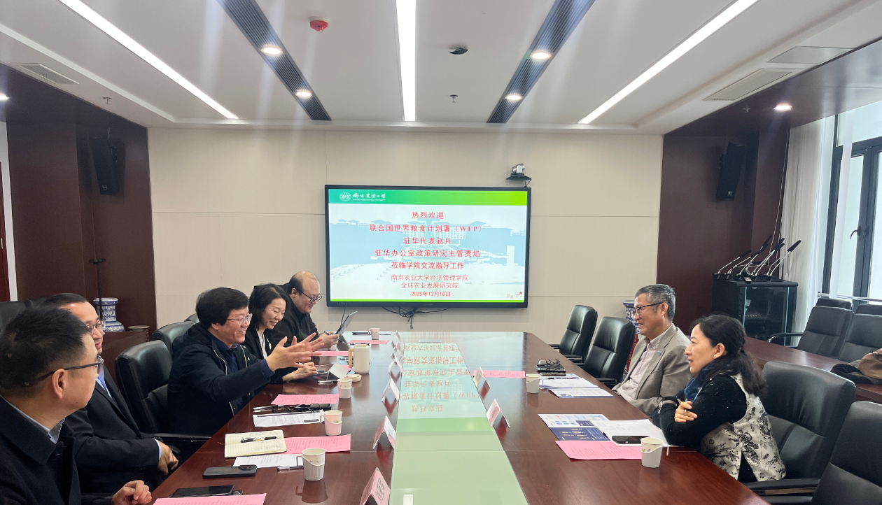 12月17日至18日,联合国世界粮食计划署(WFP)驻华代表、中国办公室主任赵兵,政策研究主管贾焰一行到访南京农业大学,校长陈发棣在滨江校区与赵兵一行座谈交流。