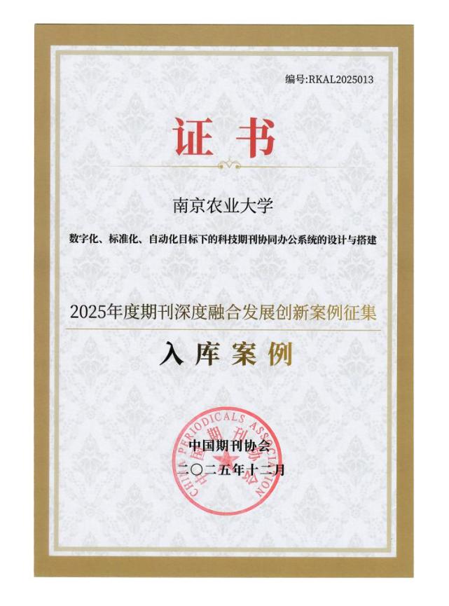 12月20日,2025年中国期刊协会年会上,受中宣部出版局委托开展的全国期刊深度融合发展创新案例正式发布。南京农业大学英文期刊编辑部申报的案例“数字化、标准化、自动化目标下的科技期刊协同办公系统的设计与搭建”成功入选入库案例。