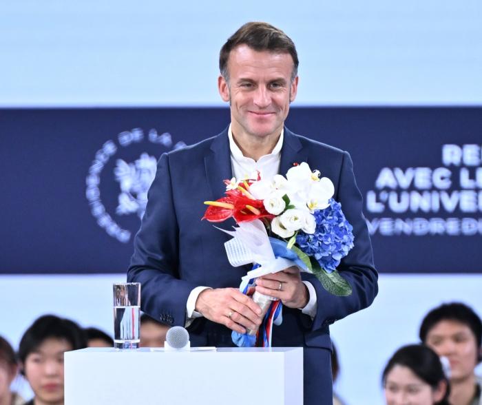 2025年12月5日下午,法国总统马克龙在成都访问四川大学。 中新社记者 张浪 摄