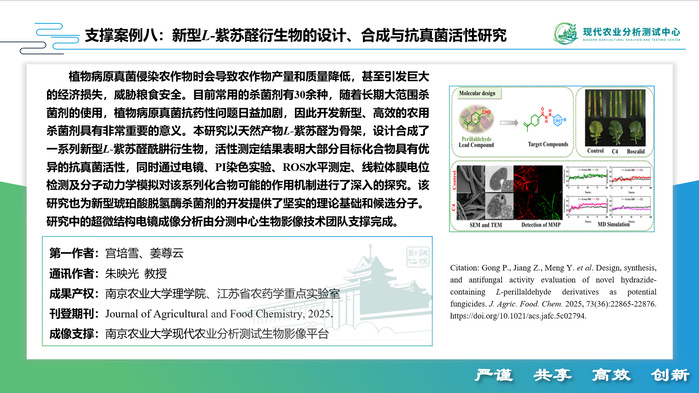 现代农业分析测试中心自成立以来,始终坚持“严谨、共享、高效、创新”的服务理念,在校级公共平台运行机制改革中发挥先行示范作用,已逐步发展成为学校科技创新的重要支撑平台。过去一年,分测中心在服务规模、能力建设与行业影响力方面取得显著成效,累计服务校内外用户1550余人次,完成测试样品7000余个,设备运行总机时超20万小时;组织培训162场,覆盖3000余人次;专业能力获得多方权威认可,获中国仪器仪表学会科学仪器设备验证评价中心联合实验室授牌,在省级大型仪器共享服务竞赛中荣获“实验好技能”、“共享好案例”各1项,获高校分析测试优秀青年人才支撑计划1项,参编国家标准1项。