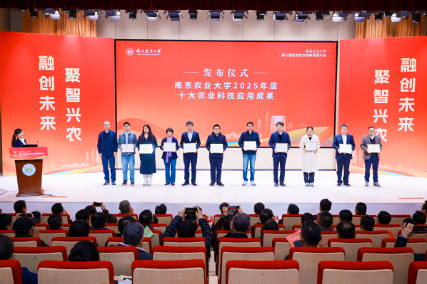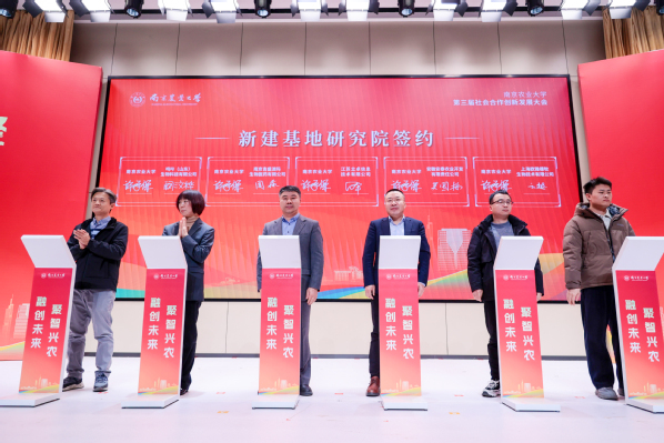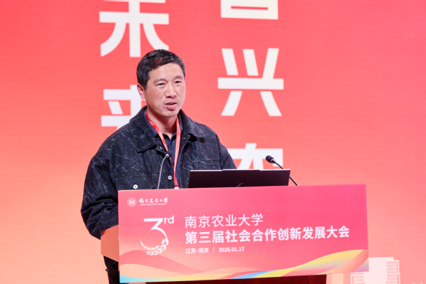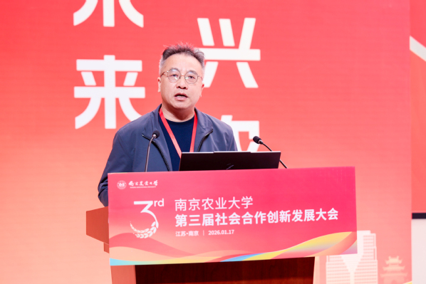 1月17日,南京农业大学第三届社会合作创新发展大会召开。大会以“聚智兴农 融创未来”为主题,共探农业科技创新与产业融合发展新路径。会上,江苏省概念验证中心(南京农业大学现代农业领域)揭牌,南京农业大学2025年度省级现代农业关键技术集成推广项目正式启动,“水稻穴穗粒三均衡群体构建技术”“小麦种肥精量条带压播高产高效栽培技术”“植物广谱免疫激活剂‘楠秾佑康’®”等南京农业大学2025年度十大农业科技应用成果同期发布。