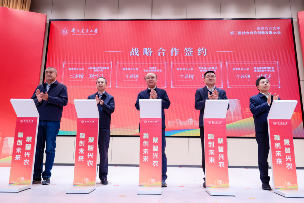 “在全面推进乡村振兴、加快建设农业强国的历史进程中,科技创新与产业创新深度融合已成为时代赋予高校的必答题。”南京农业大学校长陈发棣在致辞中表示,社会合作不仅是高校履行办学使命的重要载体,更是推动教育、科技、人才一体化发展的关键抓手。面对强国建设的时代召唤和高质量发展的迫切需求,南农将以“四个持续”推动各项合作走深走实:一是持续以精准供给对接国家战略,让科学研究根植产业沃土,推动科研选题从“学科逻辑”向“产业逻辑”转变,确保创新成果能用、管用、好用。二是持续以贯通机制打通转化堵点,让创新成果转化为现实生产力,推动更多创新成果真正从“论文中”走进“车间里”、落到“田野上”。三是持续以扎实服务筑牢合作根基,以南农模式引领振兴实践,让合作成果惠及更多地区、更多主体。四是持续以融合育人激活发展动能,让社会需求浸润培养全程,实现人才成长与产业发展的同频共振、价值共创。