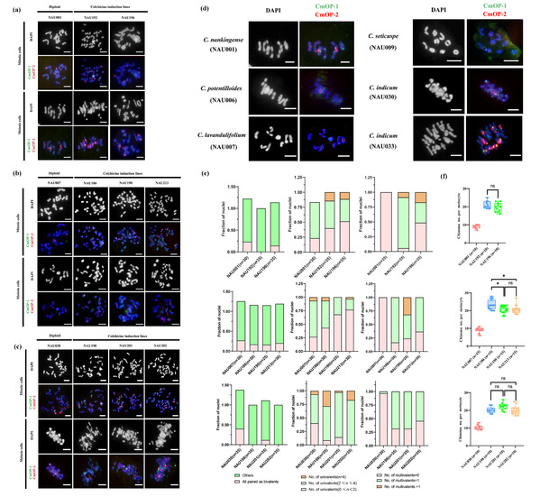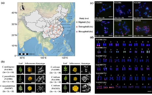 近日,南京农业大学陈发棣教授团队在植物学权威期刊《New Phytologist》上发表题为“Sequential Oligo-FISH reveals conserved synteny and rapid cytological diploidization in Chrysanthemum autopolyploids”的研究。该研究攻克了菊属染色体相似度高、难以精确识别的技术难题,首次开发出菊属染色体特异涂染探针库,并建立顺序荧光原位杂交(FISH)技术体系,实现了同源染色体组在染色体水平上的精确识别与追踪,揭示了菊属多倍体快速细胞学二倍化的潜在机制。