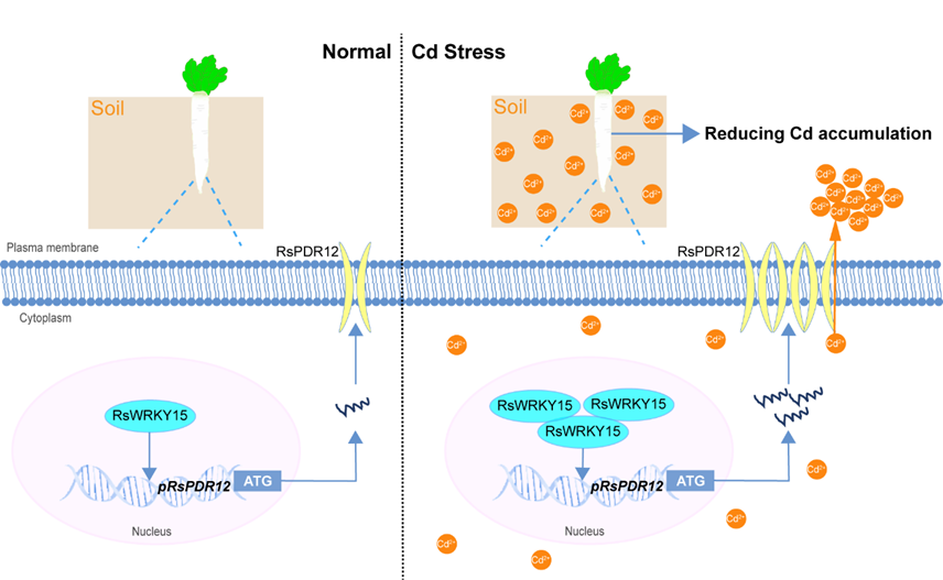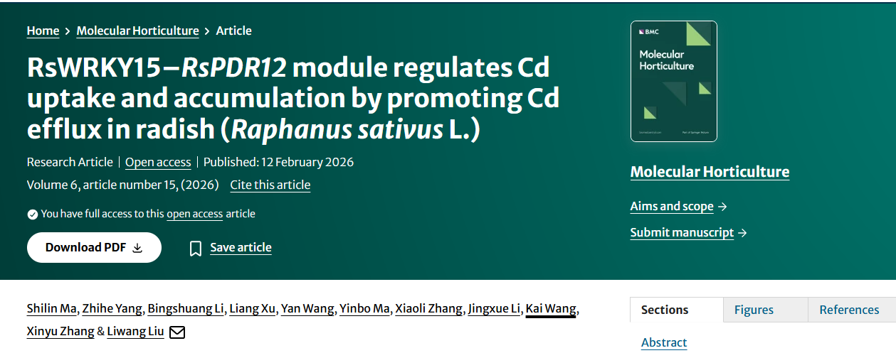 近日,南京农业大学作物遗传与种质创新利用全国重点实验室、园艺学院柳李旺教授团队在国际期刊《Molecular Horticulture》在线发表题为 “RsWRKY15-RsPDR12 module regulates Cd uptake and accumulation by promoting Cd efflux in radish (Raphanus sativus L.) ”的研究论文,揭示了RsWRKY15-RsPDR12模块降低萝卜肉质根Cd吸收累积的分子机制。