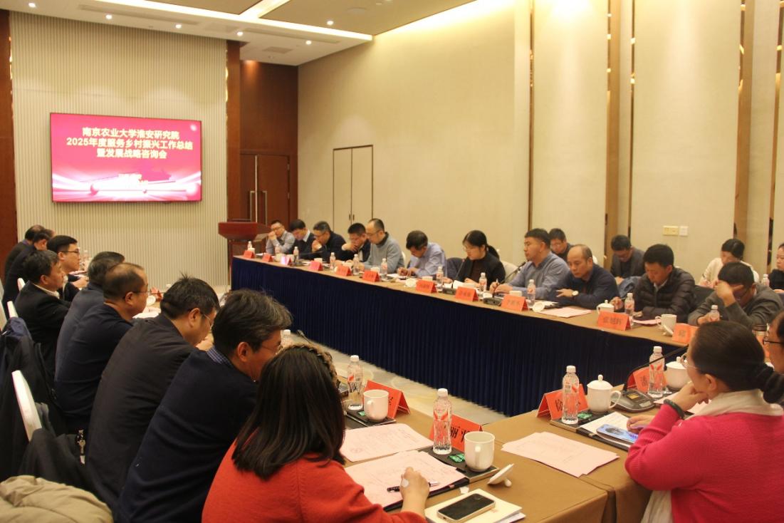 2月12日下午,南京农业大学淮安研究院2025年度服务乡村振兴工作总结暨发展战略咨询会在淮安顺利召开。会议全面总结2025年度工作成效,精准谋划未来发展路径,汇聚校地双方智慧力量,共商科技助农、产业兴农、人才强农新思路,为淮安乡村全面振兴与农业现代化高质量发展注入强劲动力。南京农业大学党委常委、副校长冯淑怡,淮安市政府副秘书长王开权等出席了会议。