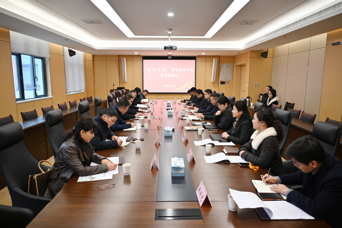 陈发棣对龙健一行到访表示欢迎。他指出,学校多年来与黔东南州在携手推进乡村振兴中结下了深厚情谊,在定点帮扶与成果转化中打下了良好的合作基础。凯里学院扎根民族地区办教育,与南农“强农兴农”使命高度契合。去年12月,黔东南州人民政府与南京农业大学签订校地合作协议,学校定点帮扶工作由帮扶县向全州更宽领域、更高水平迈进。希望南农与凯里学院的合作以此为契机,将校际协作与地方需求深度融合,围绕黔东南州资源禀赋和农业特色,携手推动科技创新与成果转化,在服务黔东南州发展、助力麻江乡村振兴中发挥更大力量。